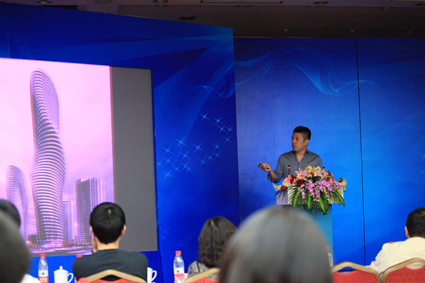 馬巖松因中標(biāo)加拿大的高層住宅項目“夢露大廈”而聞名,其鮮明的建筑作品風(fēng)格也受到了國內(nèi) 外建筑界的廣泛關(guān)注。本次報告馬巖松從對魚之生活空間的魚缸設(shè)計講起,闡述了自己在建筑設(shè)計中對使用者、環(huán)境的思考,直至這種理念在典型設(shè)計作品中的體現(xiàn)和運用。憑借對現(xiàn)代高層建筑設(shè)計的獨特見解,他設(shè)計了具有與眾不同曲線的“夢露大廈”,體現(xiàn)出對工業(yè)社會建筑追求力量與高效的自我應(yīng)對策略;天津濱海新區(qū)的中鋼大廈中,六邊形形成的結(jié)構(gòu)與表皮一體化表現(xiàn)了實實在在的建筑,同時又不斷變幻著表情;鄂爾多斯博物館和哈爾濱木雕博物館中,其展示空間的趣味變化都考慮了參觀者在其中的活動和體驗;而黃山腳下的住宅或是北京老城邊的美術(shù)館則非常細心地關(guān)注了建筑所處的既有自然環(huán)境和人文環(huán)境;報告最后他展開了對未來城市的無限想象。