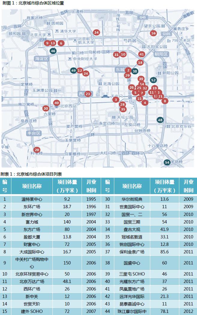 全國大型城市綜合體項(xiàng)目列表及分布圖(北京)