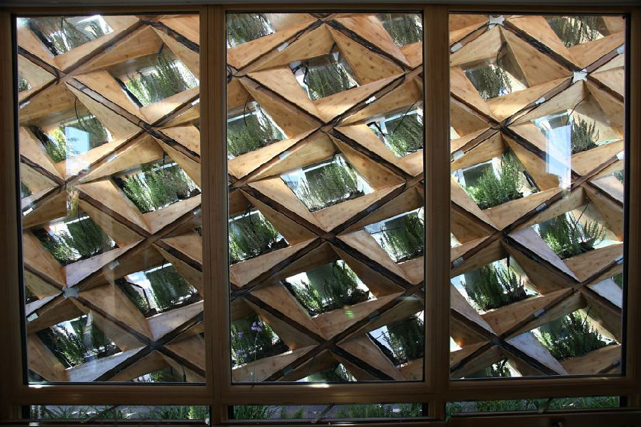 袁烽:一直致力于材料的多維物質(zhì)性表達。以可樂瓶及其自身形成的空腔作為建筑的一層外皮,可開啟通風、隔熱、排出雨水;按絲綢紋理進行數(shù)字模擬,以混凝土砌塊堆砌形成絲綢般的墻面;茶室樓梯以水泥塑造出空間維度變化;諾華制藥地下室空間設計中,運用混凝土對傳統(tǒng)中國山水畫進行數(shù)字化呈現(xiàn);在太陽能住宅競賽中,以竹木結(jié)構(gòu)為骨架,內(nèi)部結(jié)合保溫、通風、水和綠化系統(tǒng)、遮陽系統(tǒng),同樣實現(xiàn)了多重目標。通過數(shù)字化設計和加工,可以變傳統(tǒng)材料為多維材料,從而塑造出多維空間。