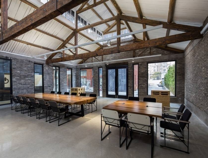 章明:以新近完成并搬遷的原作設(shè)計(jì)工作室為例,講述了一個(gè)連做倉(cāng)庫(kù)都被嫌棄的上海鞋釘廠(chǎng)老廠(chǎng)房,經(jīng)設(shè)計(jì)師的妙手化腐朽為神奇。利用混凝土密封固化劑整理地坪,保留青磚墻面和木屋架,白水泥材料輔以陰刻字被應(yīng)用于桌面,木材以燕尾榫拼接設(shè)計(jì)的會(huì)議桌,自行設(shè)計(jì)并安裝的鍍鋅水管燈,植物、水面組成的庭院向工作空間開(kāi)放……原有的老廠(chǎng)房依稀可見(jiàn),但已完全換做新的功能。