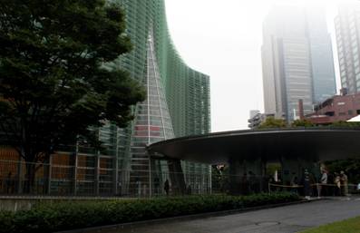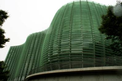 位于東京六本木的國立新美術(shù)館,建筑面積為47,960平方米,是日本國內(nèi)展廳最大的美術(shù)館。黑川紀(jì)章在日本建筑界更像一位思想家,不管他的“新陳代謝“理論還是”空“理論、“灰”理論都在當(dāng)時(shí)的建筑界起到思想旋風(fēng)的作用,同樣他在國立美術(shù)館設(shè)計(jì)尋找自己最完美的答案的時(shí)候融入了自己的“共生思想”的設(shè)計(jì)理念,大塊的規(guī)整的展覽空間并沒有妨礙整個(gè)建筑具有自己鮮明的特色,相反,外表“利休灰”的色彩搭配更好的烘托出曲面玻璃圍合出的共享大廳,使人們體驗(yàn)到這種室內(nèi)外的空間滲透,使門廳具有混淆室內(nèi)外的微妙空間效果,人們透過玻璃可以望見太陽、云彩和天空,建筑顯得平實(shí)、含蓄更接近人性。