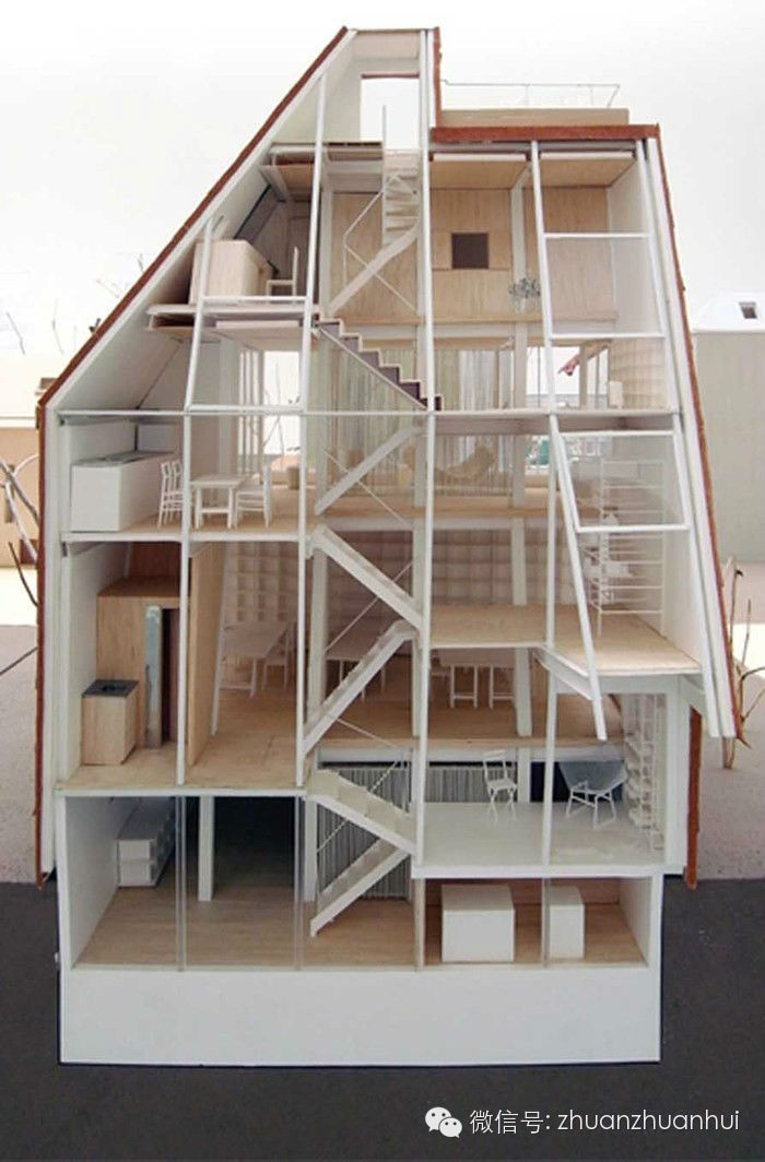 犬吠工作室為個(gè)人住宅設(shè)計(jì)的案例,大多是先天不佳的環(huán)境,但經(jīng)過他們的精心設(shè)計(jì)后,出乎意料的轉(zhuǎn)變成為舒適、沒有壓迫感的居住空間;其成功的秘密在于將平常橫向發(fā)展的居家空間轉(zhuǎn)換為直立式,并大量設(shè)置玻璃窗,以增加采光與視野。