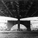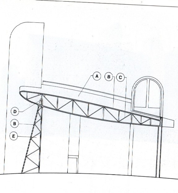 使用較重的混凝土之后,對(duì)支座的拉力會(huì)使其底部產(chǎn)生巨大的傾覆力矩。為此,巴爾蒙德在兩端的剪力墻上設(shè)置了一系列垂直的鰭狀片墻抵抗側(cè)向的拉力,并在地下采用了一系列橫穿整個(gè)跨度的地梁來(lái)連接兩端的基礎(chǔ)。地梁起到了拉桿的作用,把所有的構(gòu)件連接在一起形成了一個(gè)完整的荷載回路,位于空中的拉力與地下的反推力形成閉合,并與支座相連。