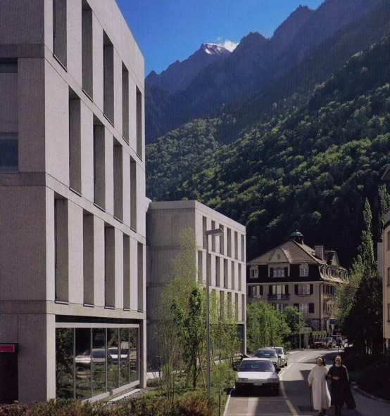 奧拓廣場(chǎng)大樓位于庫(kù)爾的歷史風(fēng)貌舊城區(qū),被3道承重實(shí)墻分隔開(kāi),形成4個(gè)跨度在20~30m之間的盒子。建筑混合商業(yè)、辦公室和公寓,其中辦公和公寓這些小空間的功能集中在上部,由內(nèi)部走廊串聯(lián),而底層空間由于功能難以確定,因此設(shè)計(jì)師希望創(chuàng)造完全不受限制的內(nèi)部空間。