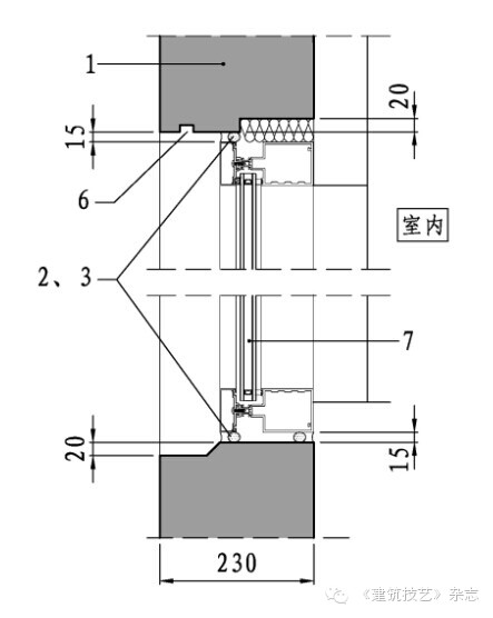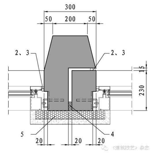 本項(xiàng)目建筑構(gòu)造設(shè)計(jì)主要包括防水、防火、保溫等,由于混凝土板厚度為230mm,外掛板自身的防水、防火性能優(yōu)越,關(guān)鍵是做好接縫防水構(gòu)造、節(jié)點(diǎn)防火和層間防火構(gòu)造,具體做法如下: