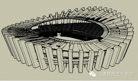 本項(xiàng)目位于內(nèi)蒙古自治區(qū)鄂爾多斯市,主體采用鋼筋混凝土框架-剪力墻結(jié)構(gòu)體系,看臺(tái)坐席數(shù)6萬(wàn)座,分低區(qū)、高區(qū)看臺(tái),所有看臺(tái)采用清水混凝土預(yù)制看臺(tái)系統(tǒng)(圖12)。