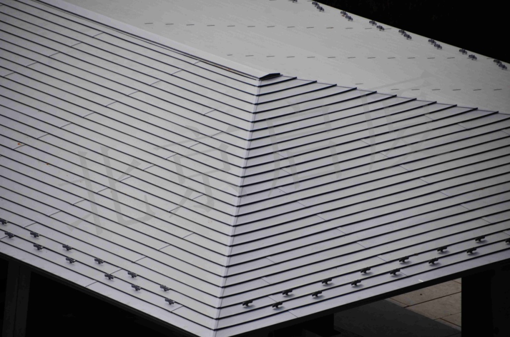 橫鋪階梯屋面板在材質(zhì)選擇上靈活多樣,可用進(jìn)口磨砂彩涂鋼板、不銹鋼板、鋁合金板、銅板等等。其中進(jìn)口磨砂彩涂鋼板的涂層為特殊加工工藝制作,表面為極其細(xì)微的沙粒質(zhì)地而非普通的光滑表面,能帶給人們一種與眾不同的華貴感,而且使用壽命遠(yuǎn)遠(yuǎn)大于國(guó)內(nèi)市場(chǎng)常見(jiàn)的彩涂鍍鋁鋅鋼板。相信橫鋪階梯屋面板未來(lái)將會(huì)在中式坡屋頂建筑中得到更多的應(yīng)用。
