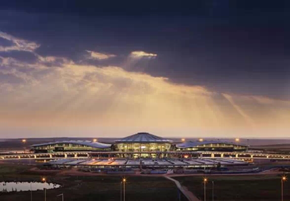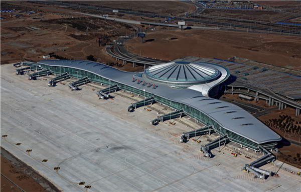 鄂爾多斯機(jī)場航站樓為鄂爾多斯機(jī)場改擴(kuò)建工程的重要組成部分。新機(jī)場充分利用現(xiàn)有的地形地勢,創(chuàng)造了極為方便的一個(gè)全天候的停車場,綜合利用地上、地下及坡道,有效地解決了復(fù)雜的外部交通。形成了鐵路,公路,航空一體的門戶交通樞紐。于2012年建成投入使用,當(dāng)時(shí)為華北地區(qū)第四大機(jī)場,是位于國內(nèi)支線機(jī)場規(guī)模最大,全內(nèi)蒙古第一的航站樓。適應(yīng)了鄂爾多斯航空客運(yùn)每年翻一番的快速發(fā)展需求。