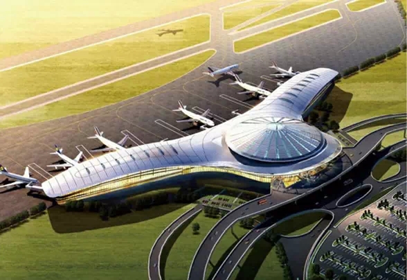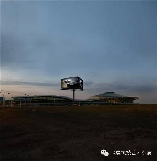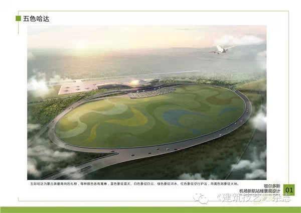 鄂爾多斯機(jī)場航站樓由中國建筑設(shè)計(jì)研究院(集團(tuán))中旭建筑設(shè)計(jì)研究院作為設(shè)計(jì)總承包,中國民航機(jī)場建設(shè)集團(tuán)公司及加拿大B+H建筑師事務(wù)所等分包設(shè)計(jì)單位共同參與設(shè)計(jì)完成。新航站樓的外形曾取材于飛去來器和玉如意,也曾取材于升起的丘陵與地形,而最終一個(gè)來源于蒙古包的圖案放在了屋頂天窗上,被放大再放大,成為了控制性的主體。兩翼底部由地面升起,彎曲伸展,形成了形象獨(dú)特的候機(jī)廊。有人說這是草原上的一只白鷹,隱喻著大汗成吉思汗出生的傳說;有人說這是一個(gè)能飛的大帳篷,像宮崎駿筆下的夢想。不經(jīng)意間,“草原雄鷹”成為了機(jī)場的宣傳詞被廣為流傳。