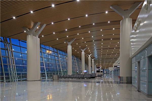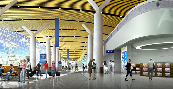 新航站樓兩翼總長540m,高度45米,建筑最大進(jìn)深180m。建筑地下一層,地上三層(局部設(shè)有夾層)。并設(shè)有5000多平方米的VIP設(shè)施。