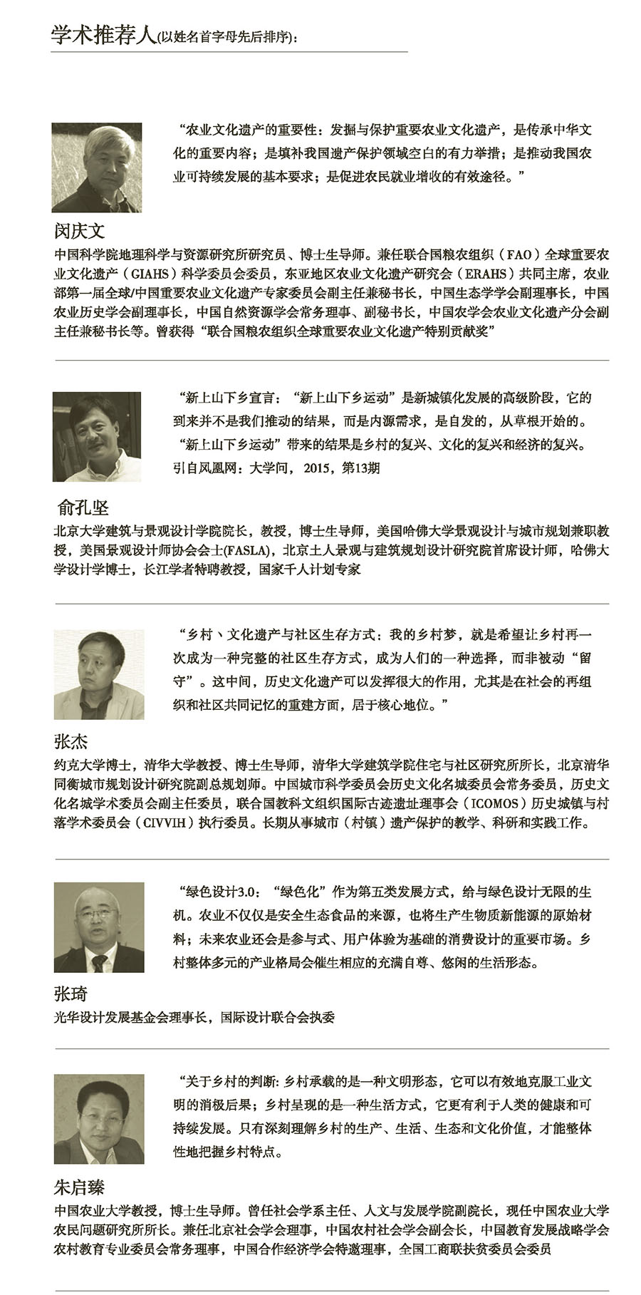 同時,展覽邀請了在學(xué)界卓有成就的五位專家作為學(xué)術(shù)推薦人,分別從不同角度切入展望鄉(xiāng)村設(shè)計的可能性。他們(以姓名首字母先后排序)分別寄語鄉(xiāng)村設(shè)計展: