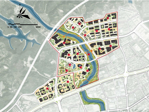 設(shè)計(jì)說明:在坪地新能量城市方案中,通過發(fā)展城市樞紐,其磁場作用可以提升區(qū)域吸引力。此外,建設(shè)低碳城市還要注重以下四個(gè)方面:即城市多樣性與尺度、生活質(zhì)量、經(jīng)濟(jì)、知識基礎(chǔ)以及多方面社會平衡。