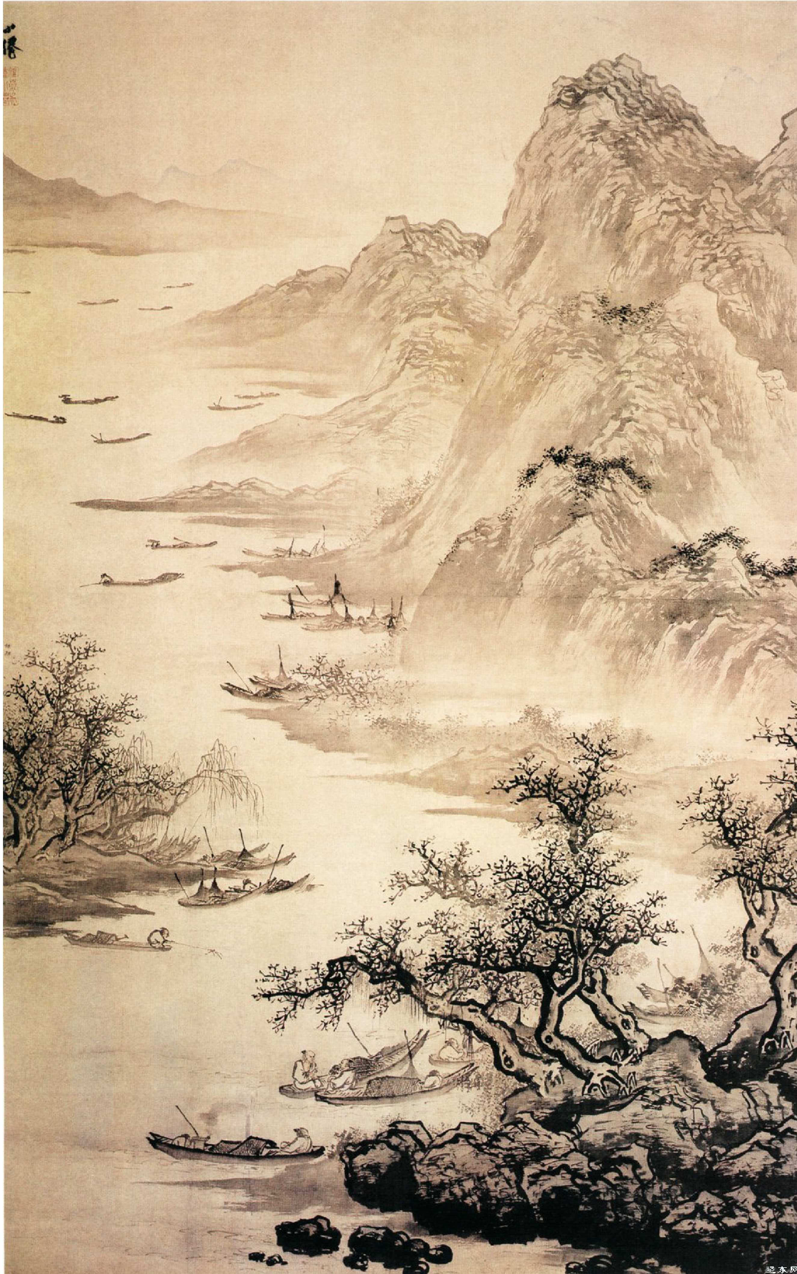 這兩張圖的對比表現(xiàn)出中國畫計白當(dāng)黑的特點, 這一點, 于在畫面上每一處都涂著油彩的油畫來講, 是有很大區(qū)別的。