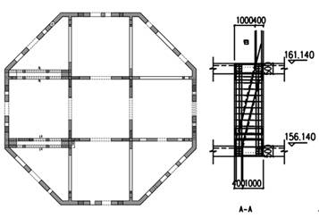 塔樓核心筒內(nèi)采用現(xiàn)澆鋼筋混凝土樓板。樓面鋼梁與鋼筋混凝土筒體平面交接處設置預埋件,鋼梁與核心筒采用鉸接連接;核心筒八角部位徑向內(nèi)外采用剛接,故在核心筒八個角部位設置型鋼。