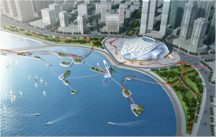 大連國(guó)際會(huì)議中心的城市設(shè)計(jì)任務(wù)是在城市主軸的未來(lái)擴(kuò)張終點(diǎn)建造一座辨識(shí)度極高的標(biāo)志性建筑。作為城市軸線的焦點(diǎn),本建筑物將深深烙印在市民的心中,以引起國(guó)際社會(huì)的關(guān)注。