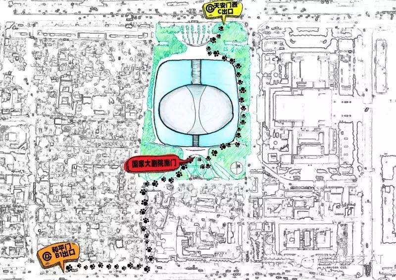 報到地點特別提醒:10月11日早報到地點為國家大劇院南門(地鐵2號線和平門站B1口,地鐵1號線天安門西站C口。特別提醒:請不要在地鐵站里直接進入大劇院,一定上到地面從南口報到領(lǐng)取入場券。具體可參照如下圖示或使用手機高德地圖等查找進入南門路線,點擊圖片可放大看)
