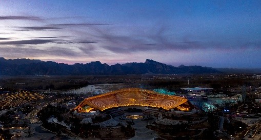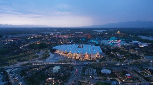 2019年北京世界園藝博覽會(huì)的標(biāo)志性建筑——中國館,位于山水園藝軸中部,緊鄰中國展園,北側(cè)為媯汭湖及演藝中心,西側(cè)為山水園藝軸及植物館,東側(cè)為中國展園及國際館,南側(cè)為園區(qū)主入口。設(shè)計(jì)從農(nóng)耕文化和中國傳統(tǒng)哲學(xué)出發(fā),以層疊的梯田肌理為本底,將部分展廳置于地下,輕盈的鋼結(jié)構(gòu)屋頂以龍脊抱月之勢勾勒出中國館圓滿溫潤的輪廓,既融入自然山水中,又成為園區(qū)的核心和焦點(diǎn)。